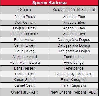 A Milli Erkek Basketbol Takımımızın Rio Olimpiyatları Elemeleri'nde mücadele edecek 14 kişilik kadrosu netleşti.