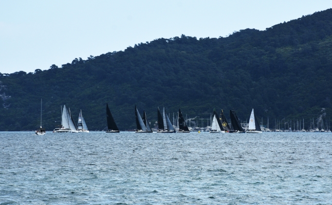 Netsel Marina'dan ayrılan yatlar, beşinci gün yarışları öncesinde antrenman turları yaptı.