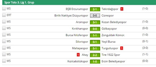 1. Grup'ta günün en farklı skoruna sahasında Turgutluspor'u 5-1 yenen Maltepespor ulaşırken lider Tire 1922 deplasmanda Altay'la 2-2 berabere kaldı.
