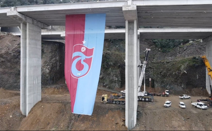 Trabzon'da viyadük ayaklarına 661 metrekarelik Trabzonspor bayrağı asıldı.