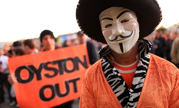 Stadın yönetim girişindeki camlara yumurta fırlatan taraftarlar baba-oğul Oystonlar'ı istifaya davet etti. Taraftarın tepkisi Reading mücadelesi boyunca da devam etti. Turuncu-beyazlı ekibin taraftarı tribünlerde Oyston ailesini protesto eden pankartlar açtı.