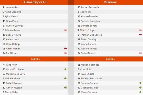 Osmanlıspor - Villarreal maçı! Osmanlıspor, UEFA Avrupa Ligi L Grubu'nda lakabı "Sarı Denizaltı" olan İspanyol ekibi Villarreal'i ağırladı. Osmanlı Stadı'nda oynanan mücadele 2-2'lik beraberlikle sona erdi.