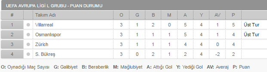 Bu sonucun ardından Villarreal 5, Osmanlıspor 4 puana ulaştı.