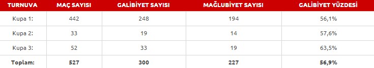 Takımımızın Avrupa Kupaları’ndaki performansı ise şöyle: