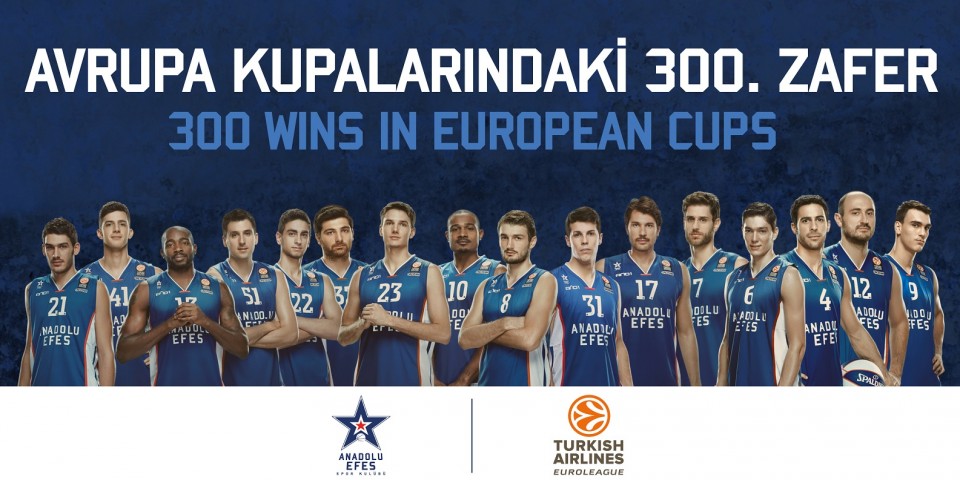 Gelecek sezon 40. yaşını kutlayacak olan Türk basketbolunun lokomotifi Efes, 11 Ekim 1979 tarihinde Maccabi Tel Aviv deplasmanında başladığı ve Koraç Kupası şampiyonluğu, Avrupa Kulüpler Kupası ikinciliği, iki kez Euroleague üçüncülüğü gibi nice başarılar yaşadığı Avrupa macerasındaki 300. zaferine EA Milano karşısında ulaştı.