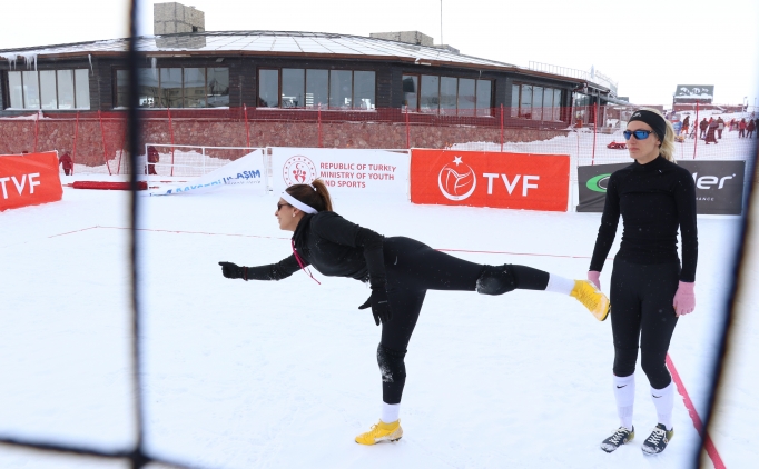 Antalya'daki plajlarda antrenman yapan Kumluca Belediyespor Kar Voleybolu Kadın Takımı, kayak merkezlerinde düzenlenen şampiyonalarda mücadele ediyor.