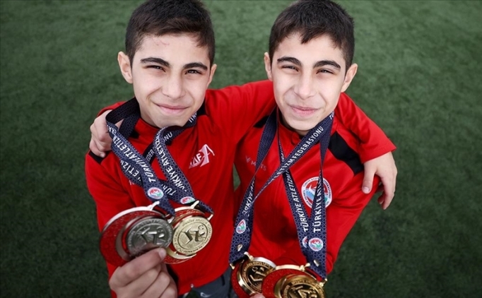 Düzce'de antrenör amcalarının yönlendirmesiyle atletizme başlayan 12 yaşındaki ikiz kardeşler Muhammet Emir ve Yasin Emir Güneş, katıldıkları yarışmalarda madalyaları topluyor.