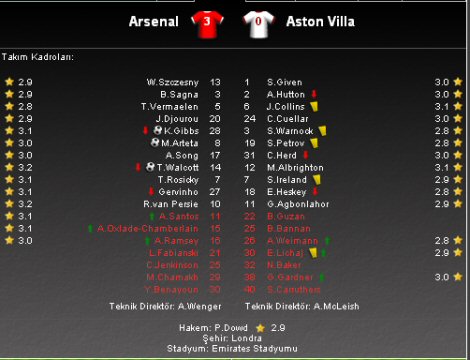 İngiltere Premier Ligi'nin 30. haftasında Arsenal evinde Aston Villa ile karşılaştı. Emirates Stadı'nda oynanan karşılaşmadan ev sahibi 3-0 galip ayrıldı ve galibiyet serisini 7 maça çıkardı.