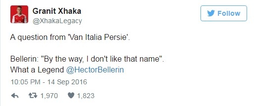 İngiliz ekibine yeni katılan Granit Xhaka ise Bellerin'in cevabını Twitter'dan paylaşarak, takım arkadaşını övdü.