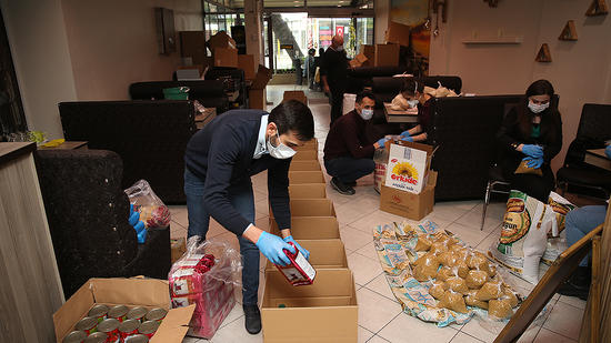 Lokantanın kapalı olduğu bu günlerde gönüllü faaliyetlerine devam eden 4 arkadaş, bu kez kendilerine ulaşan yardımseverlerin desteğiyle gıda kolileri hazırlamaya başladı.