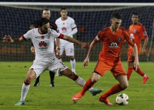 25. dakikada Dzemaili'nin ceza sahası dışından attığı şutta, savunmaya da çarpan topa kaleci Volkan yatarak sahip oldu.