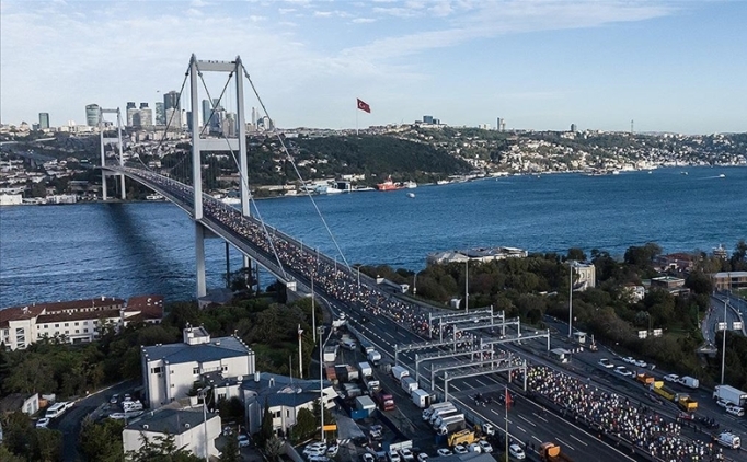Maratonda sporcular starttan sonra Anadolu ile Avrupa yakalarını birleştiren 15 Temmuz Şehitler Köprüsü'nü geçerek mücadeleye başlıyor.