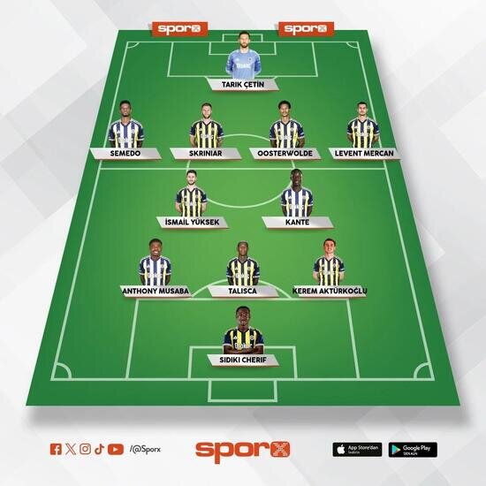 Fenerbahçe: Tarık, Semedo, Oosterwolde, Skriniar, Levent, İsmail, Kante, Musaba, Talisca, Kerem, Cherif