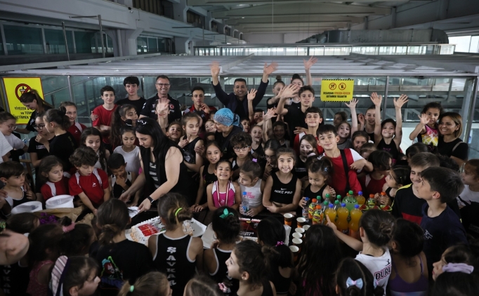 Bando eşliğinde küçük sporcularla halay çeken Adem, çocuklarla fotoğraf çektirip bol bol imza dağıttı. Şampiyon sporcu Yılmaz Göktekin ve İsmail Göktekin'le birlikte şampiyonluk pastasını da kesti.