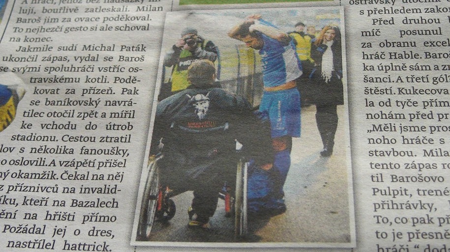 Çek ekibinin Hradec Kralove ile oynadığı ve 3-0 kazandığı maçta birbirinden güzel gollere imza atan tecrübeli golcü maçın ardından ise hat-trick yaptığı formasını engelli bir vatandaşa vererek Banik'te yine gönülleri fethetti.