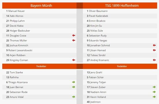 Bundesliga'nın 20. haftasında Bayern Münih deplasmanda Leverkusen ile karşılaşacakken, Hoffenheim ise evinde Darmstadt ile karşılaşacak.Mücadelede kadrolar şu şekildeydi...