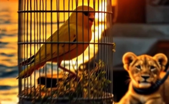 Siyah-beyazlıların sosyal medyadan "Boğazın efendi" notuyla paylaştığı videoda kanaryanın kafese konulması ve aslana tasma takılması dikkat çekti.