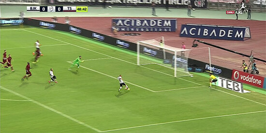 49. dakika oynanırken Trabzonspor savunmasından topu kapan Cenk Tosun kaleci Onur'la karşı karşıya pozisyonda boş durumdaki Gökhan Töre'nin önüne çıkardı topu. Boş kaleyi hafif çaprazdan gören topla buluşan Gökhan Töre sağ ayağıyla topu kaleye göndermek yerine kontrol edip sol ayağına almayı düşününce pozisyon geçti.