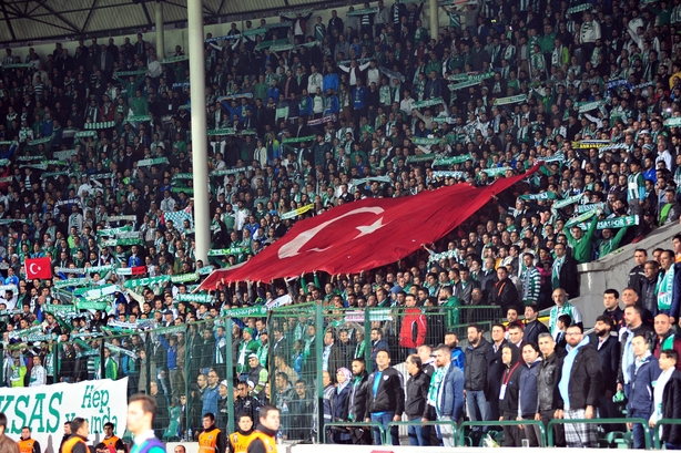 Bursasporlu taraftarlar takımlarını coşkulu bir şekilde destekledi. Yeşil-beyazlı taraftarlar önce tüm takımı tribünlere çağırıp alkışladı. Ardından ise futbolcuları tek tek davet ederek, "yumruk şov" yaptırdı.