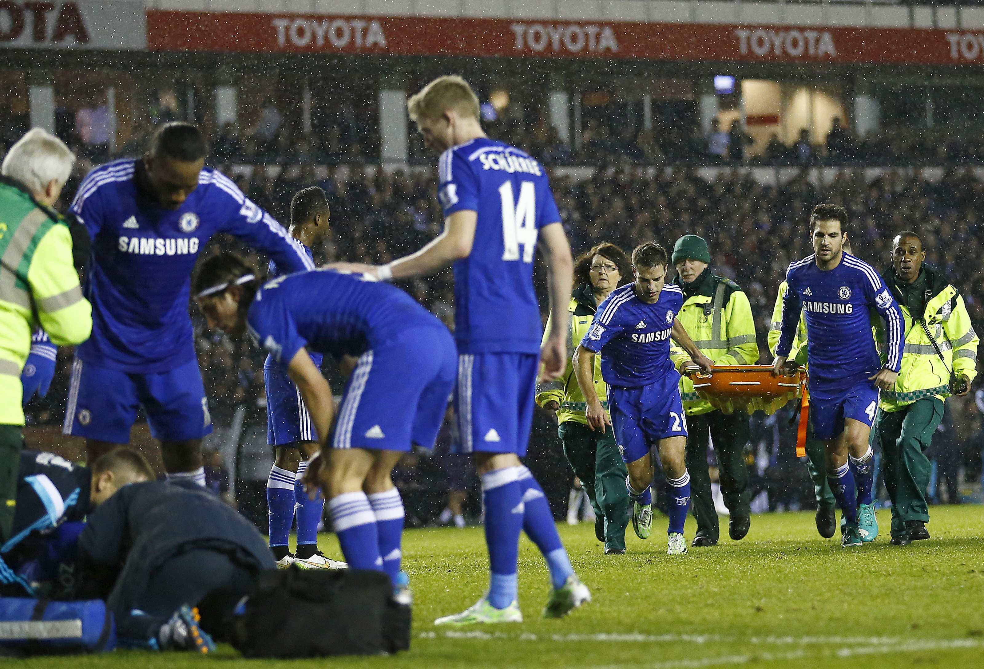 Zouma'nın durumunun kötü olduğunu gören takım arkadaşlarının üzüntüsü kameralara yansırken Azpilicueta ve Fabregas sedyenin daha hızlı taşınması için görevlilere yardım etti.İkinci yarıda yerini Branislav Ivanovic'e bırakan Zouma hakkında henüz net bir açıklama yapılmazken genç futbolcu sahayı boyunlukla terk etti.