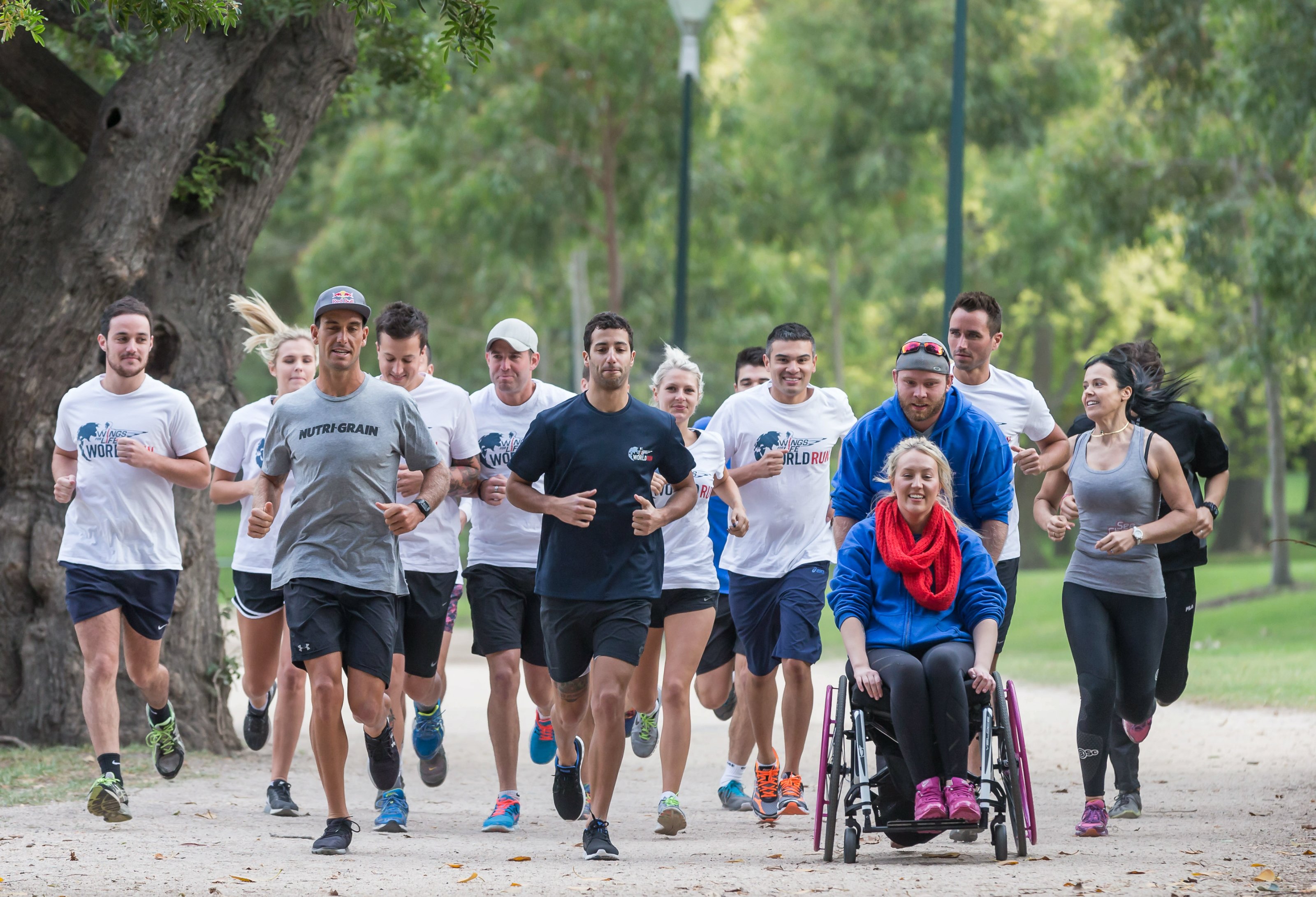 Mükemmel geçirdiği 2014 sezonunda üç Grand Prix kazanan Ricciardo, Sporx'in sponsorları arasında yer aldığı Wings For Life’ın elçileri arasında yer alıyor. Ricciardo, koşu antrenmanlarında Wings For Life World Run için geliştirilen mobil uygulamayla yarış deneyimini sanal olarak yaşıyor. Apple App Store ve Google Play Store üzerinden akıllı telefonlara ücretsiz yüklenebilen Wings for Life World Run uygulaması, koşucuyu takip eden yakalama aracının bir simülasyonunu da içinde barındırıyor. Koşucuya antrenmanda sesli olarak yakalama aracının takibe başladığı söylüyor. Sanal otomobilin koşucuya uzaklığını ve giderek yaklaştığını bildirerek heyecanı yukarıda tutuyor.