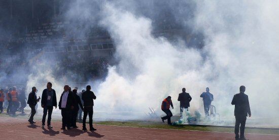 Karşılaşma başlamadan önce kapalı tribündeki Karşıyakalı taraftarlar, açık tribünde yer alan Göztepeli seyircilere doğru yabancı madde attı. Bu olayın ardından bir taraftarın götürüldüğü ambulansın stadı terk ettiği görüldü.