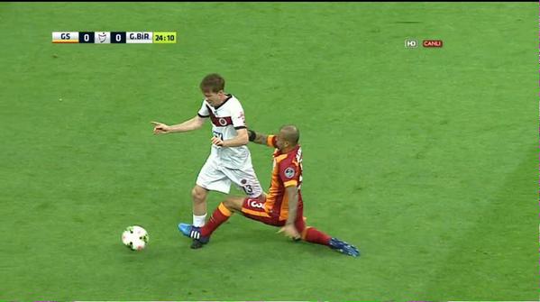 Felipe Melo'nun, mücadelenin 25. dakikasında orta sahada Hleb'e yaptığı hareket tartışmalara yol açtı.