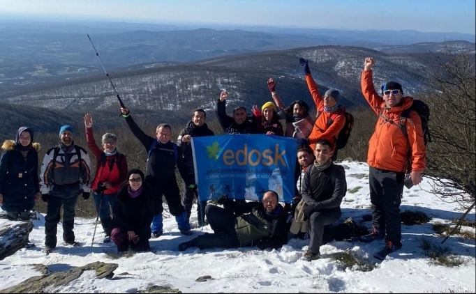 Edirne Doğa Sporları Kulübü (EDOSK) üyeleri, Trakya'nın en yüksek noktası olan karla kaplı Mahya Dağı'na tırmandı.