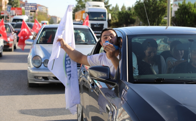 Konuşmaların ardından Ünal ve yakınları, konvoy eşliğinde ilçe turu attı.