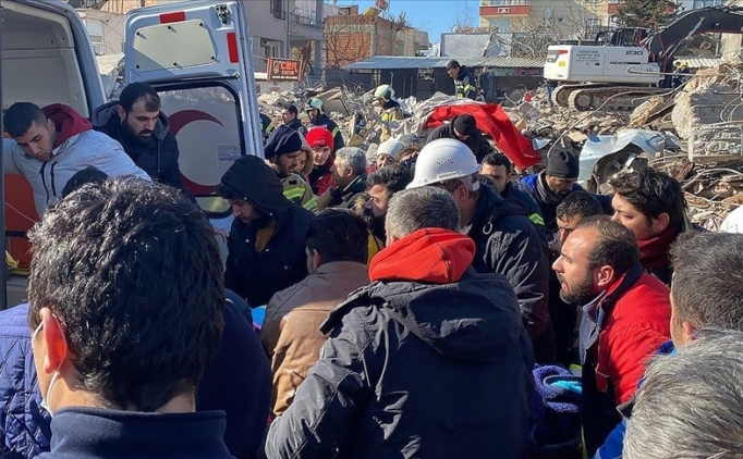 Pazarcık ve Elbistan merkezli 7,7 ve 7,6 büyüklüğündeki depremlerde yıkılan binalarda arama kurtarma çalışmaları sürüyor.