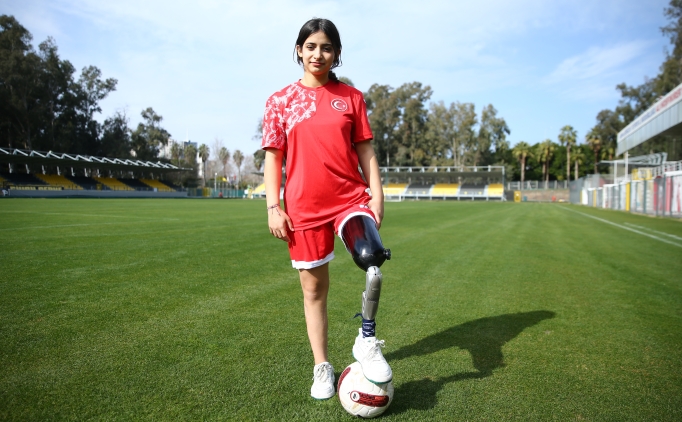 Hatay'da depremde babasını kaybettiği apartmanın enkazından 45. saatte kurtarılan 16 yaşındaki Tuğba Akın, dizden ampute edilen sol bacağına protezin takıldığı Adana'da futbola başladı.