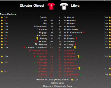 Ekvator Ginesi bu galibiyetle A Grubu'ndaki ilk maçından 3 puanla ayrılırken, Libya 0 puanda kaldı. Gruptaki ikinci maçlarda Ekvator Ginesi, turnuvanın favorilerinden Senegal ile karşılaşırken; Libya Zambiya karşısında 3 puan mücadelesi verecek.