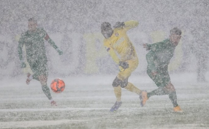 Spor Toto 1. Lig'in 22. haftasında pazar günü başlayan ancak yoğun kar yağışı nedeniyle pazartesiye ertelenen Eyüpspor-Bursaspor mücadelesi, yine oynanamadı.