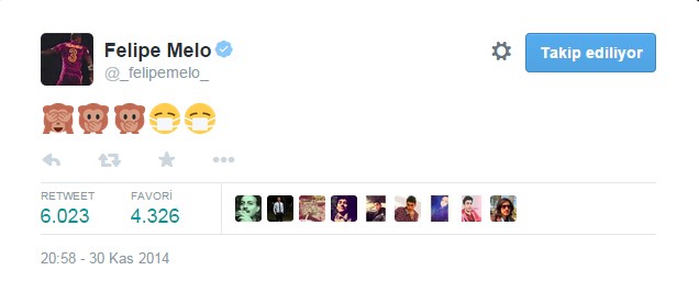 Felipe Melo'nun bu tweeti "Üç maymun" şeklinde yorumlandı.