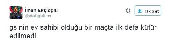 Öte yandan Fenerbahçeli yönetici İlhan Ekşioğlu, seyircisiz oynanan maç için, "GS nin ev sahibi olduğu bir maçta ilk defa küfür edilmedi" tweeti ile Galatasaray taraftarlarını kızdırdı.