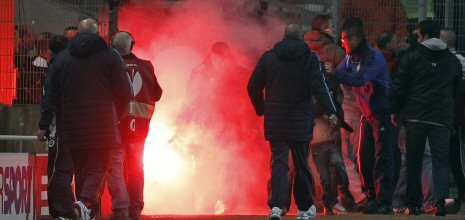Golden sonra adeta tribünler karıştı. Marsilya taraftarları bir anda taşkınlık yaratırken statta yer alan Fransa polisi müdehale etmek zorunda kaldı. Fenerbahçelilerin de yaktıkları meşaleden dolayı uyarı anonsu aldığı sırada da maçın hakemi Martin Atkinson ilk 45 dakikanın son düdüğünü çaldı.
