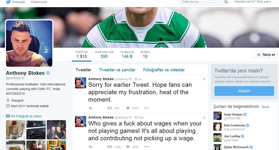 Anthony Stokes, daha sonra konu hakkında bir tweet daha atarken, özür diledi ve ''Attığım tweetler için özür diyorum. Umarım taraftarımız da yaşadığım üzüntüyü anlar. Anın sıcaklığı ile olan bir şey'' ifadelerini kullandı.