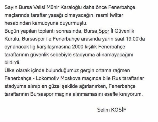İşte Kosif'in Twitter'dan paylaştığı açıklama:
