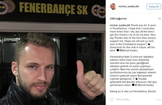 Kişisel Instagram hesabından bir fotoğraf yayınlayan Kadlec; "Fenerbahçe'deki 3 yılım için teşekkür ederim. Daha fazla süre alabilmek isterdim ama her şans geldiğinde elimden gelenin en iyisini yapmaya çalıştım. Beni her zaman destekleyen taraftarlarımıza da çok teşekkür ederim. Umarım gelecek sezon Şampiyonlar Ligi'nde görüşürüz. Kulübe gelecekte bol şanslar diliyorum. Her şey gönlünüzce olsun." notunu bıraktı.
