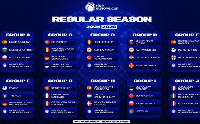 Uluslararası Basketbol Federasyonu (FIBA) Avrupa Kupası 2025-26 sezonu normal sezon grupları ve eleme eşleşmeleri yapılan kura çekimiyle belirlendi. Türkiye'den Aliağa Petkimspor C Grubu'nda yer aldı. Bursaspor ise Basketbol Şampiyonlar Ligi (BCL) elemelerinden gelmesi durumunda I Grubu'nda yer alacak.