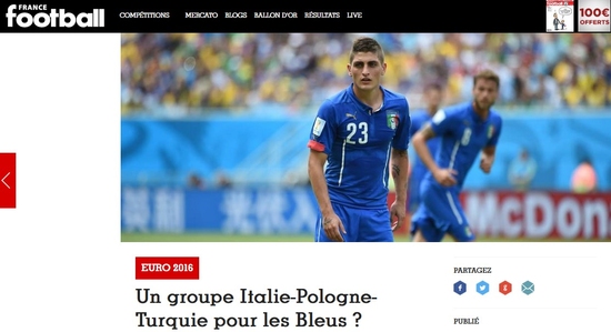İşte France Football'un ''Fransa için en karışık grup'' şeklinde verdiği haberde yer alan takımlar; Fransa (1. torba), İtalya (2. torba), Polonya (3. torba), Türkiye (4. torba)