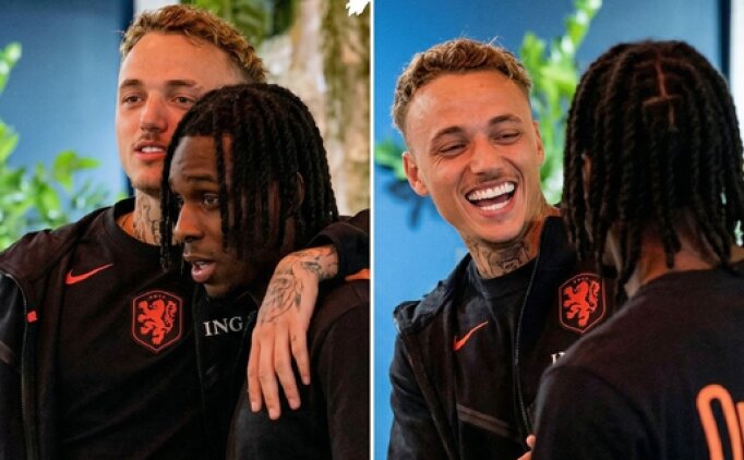 Hollandalı futbolcu Noa Lang, Liverpool forması giyen vatandaşı Frimpong ile milli takım kampında karşılaştı.