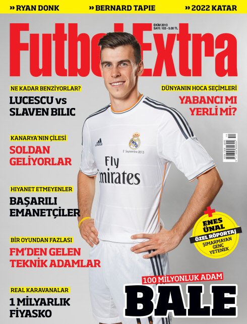 Hazırladığı dosyalar ve yaptığı röportajlarla futbol gündemini belirleyen Futbol Extra, Ekim sayısında da harika dosyalarla karşınızda. Kapağında Mesut Özil'in Real Madrid'den gönderilmesine neden olan Gareth Bale'i konuk eden Futbol Extra'da, Galli oyuncuyla ilgili hiç bilmediğiniz bilgilere ulaşacaksınız.
