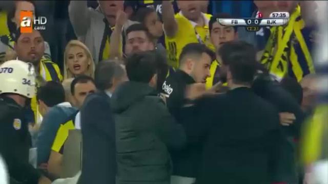 Tribünlerden gelen yabancı maddeler sonrası Beşiktaş Teknik Direktörü Şenol Güneş yerde kaldı.