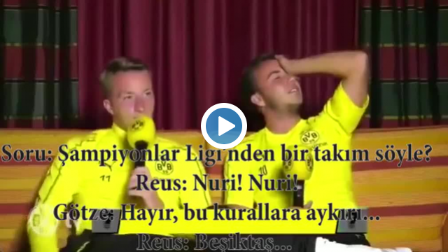 Marco Reus ile Mario Götze'nin katıldığı yarışmada Reus, "Geçen sezon Şampiyonlar Ligi'nde oynayan bir takım söyle" sorusuna Beşiktaş cevabını veriyor.