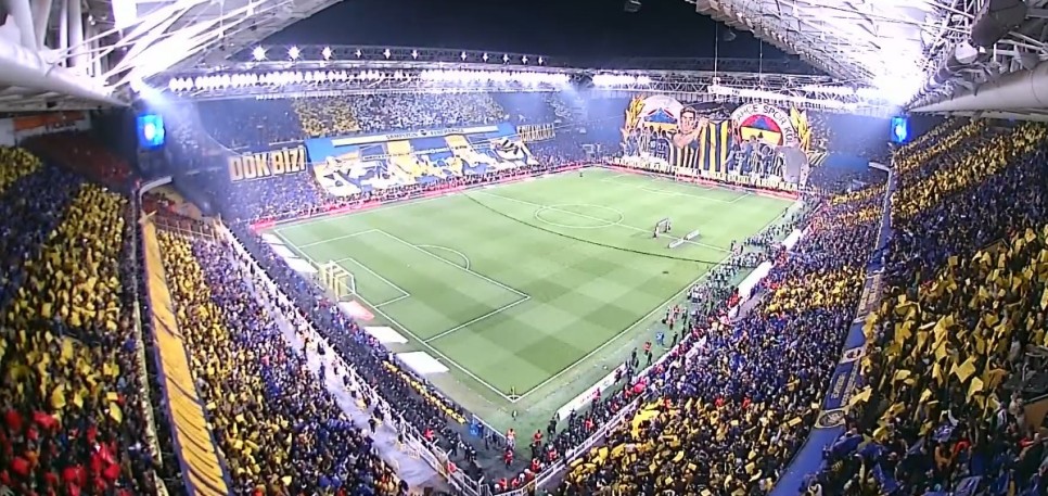 Fenerbahçe, Süper Lig'de sahasında Galatasaray ile karşı karşıya geldi. Sarı-lacivertli tribünler, derbi öncesi koreografiye imza attı. İşte o kareler...