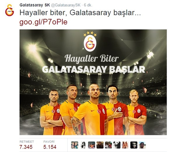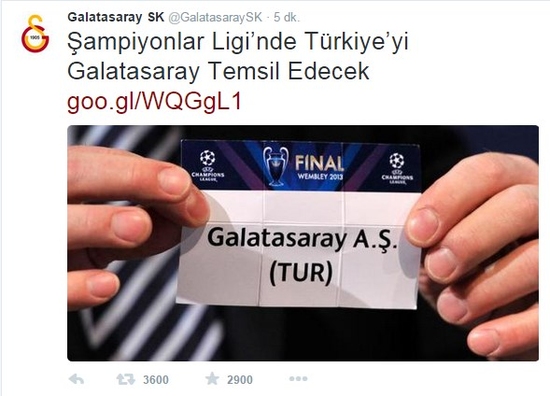 Bunun ardından yine Galatasaray twitter hesabı ve resmi sitesi, "Türkiye'yi Şampiyonlar Ligi'nde Galatasaray temsil edecek" başlıklı haberi paylaştı.