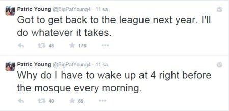 Mikro Blog sitesi Twitter'dan erkek kalkmak ile ilgili şikayetlerini dile getiren Young, "Neden her sabah saat 4'te, ezandan bile önce uyanmak zorundayım? Önümüzdeki sezon geri dönmek zorundayım ve bunun için ne gerekiyorsa yapacağım." ifadelerini kullandı.