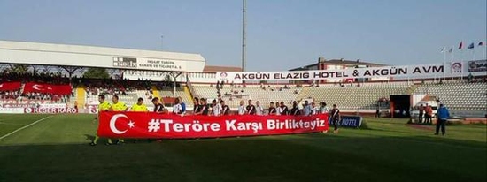 Elazığ Atatürk Stadı'nda takımlar maç öncesi terör karşıtı pankartlarla sahaya çıktı.