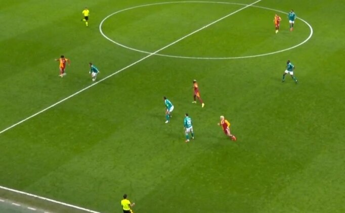 Yan hakem ofsayt bayrağını kaldırdı. Daha sonra VAR incelemesinin ardından ofsayt kararı onaylandı.Okan Buruk, ofsayt kararına itiraz etti.